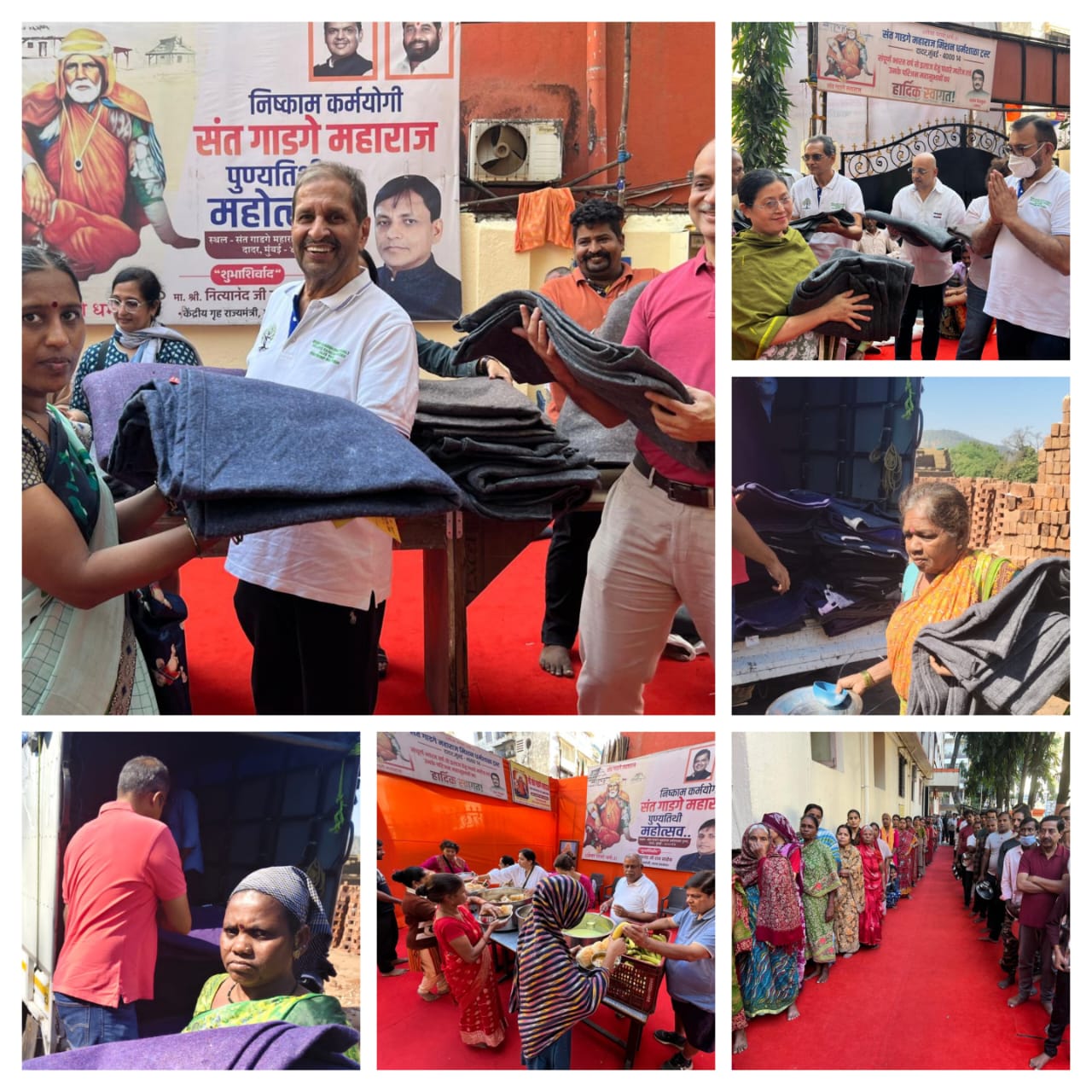 On the auspicious occasion of Sant Ghadge Maharaj Punyatithi, they distributed blankets to 350 patients & family members at Ghadge Maharaj Dharamshala, Dadar.